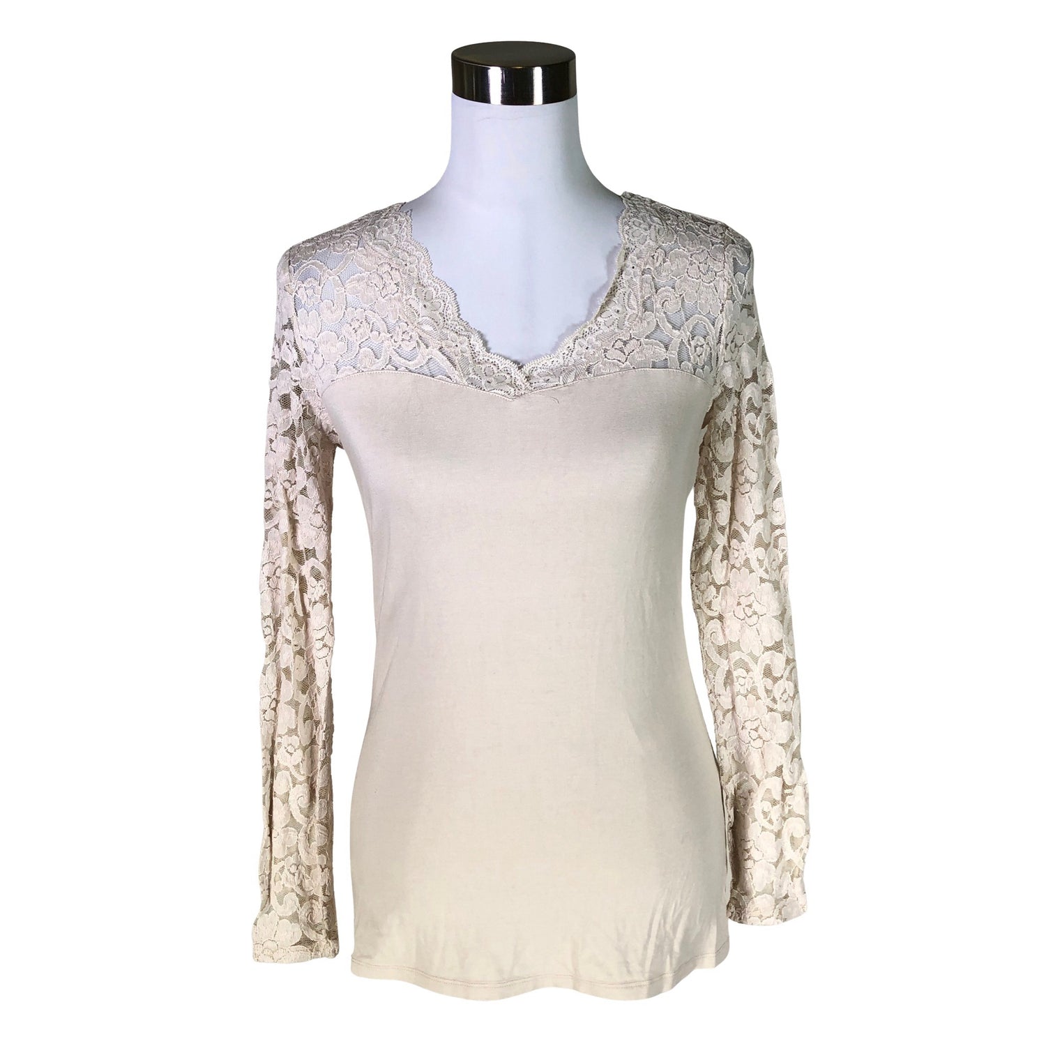 Tuotteen ylä- ja alaosa ovat eri materiaalia. Tuote on osin pitsiä.
