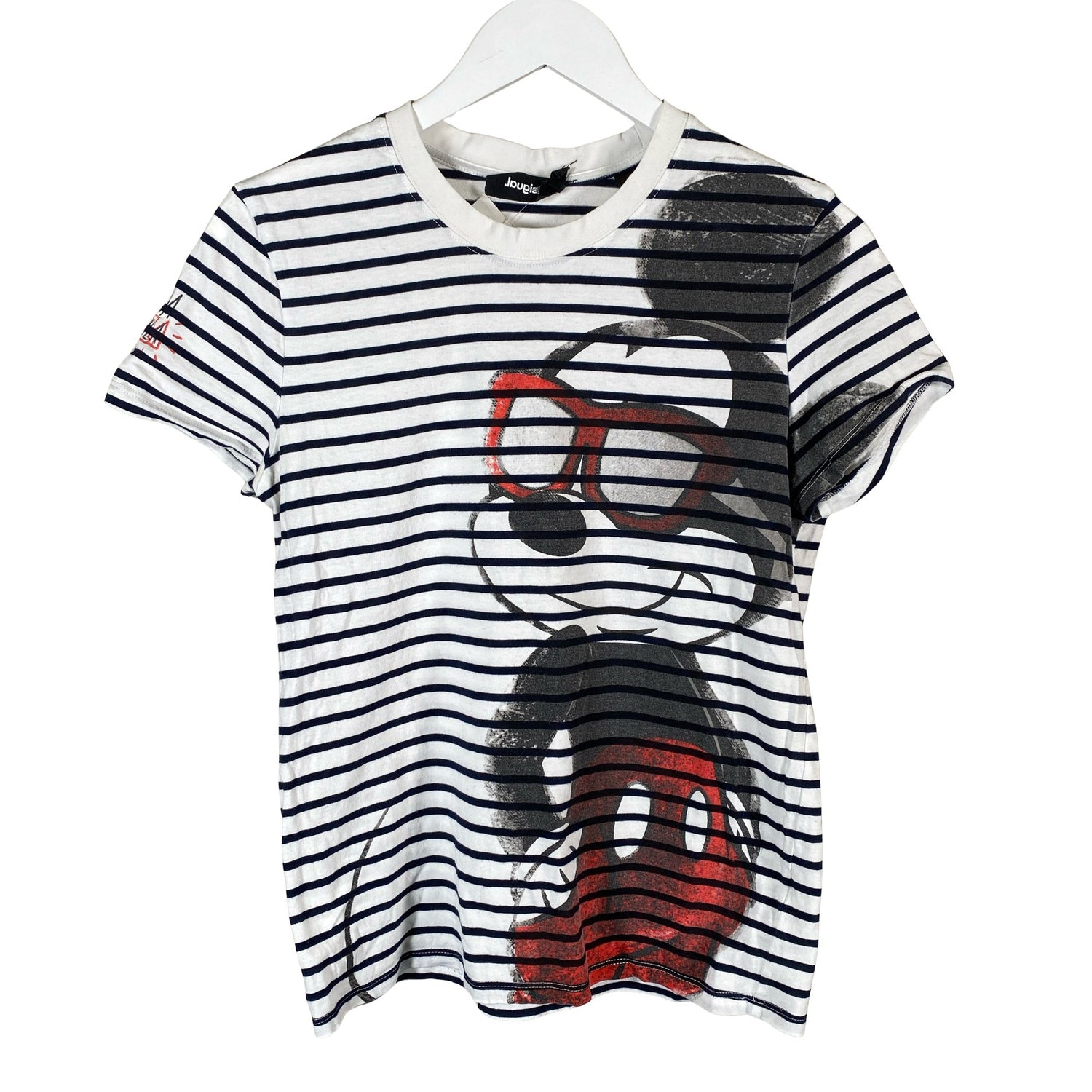 Mallisto: Desigual x Mickey Mouse. Materiaali joustaa hieman. Kauluksessa on hieman meikkitahraa. Lähtee todennäköisesti pesussa. Tuotteen pinnassa on aavistus pesu-/käyttökulumaa. Yleisilme on siisti.