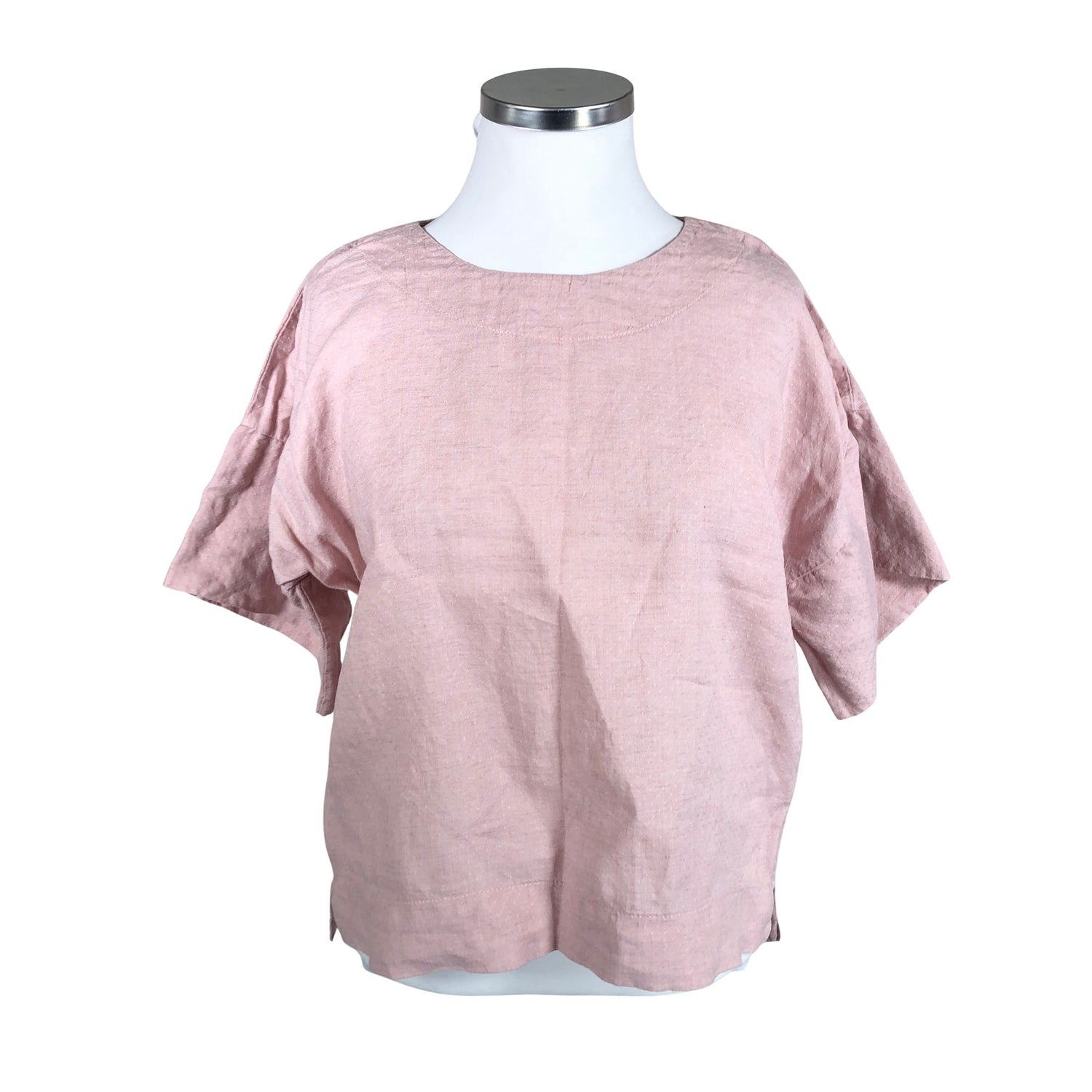 Pellavaa. Sivusaumoissa on halkiot. Tuotteen pinnassa on aavistus pesu-/käyttökulumaa. Yleisilme on siisti.