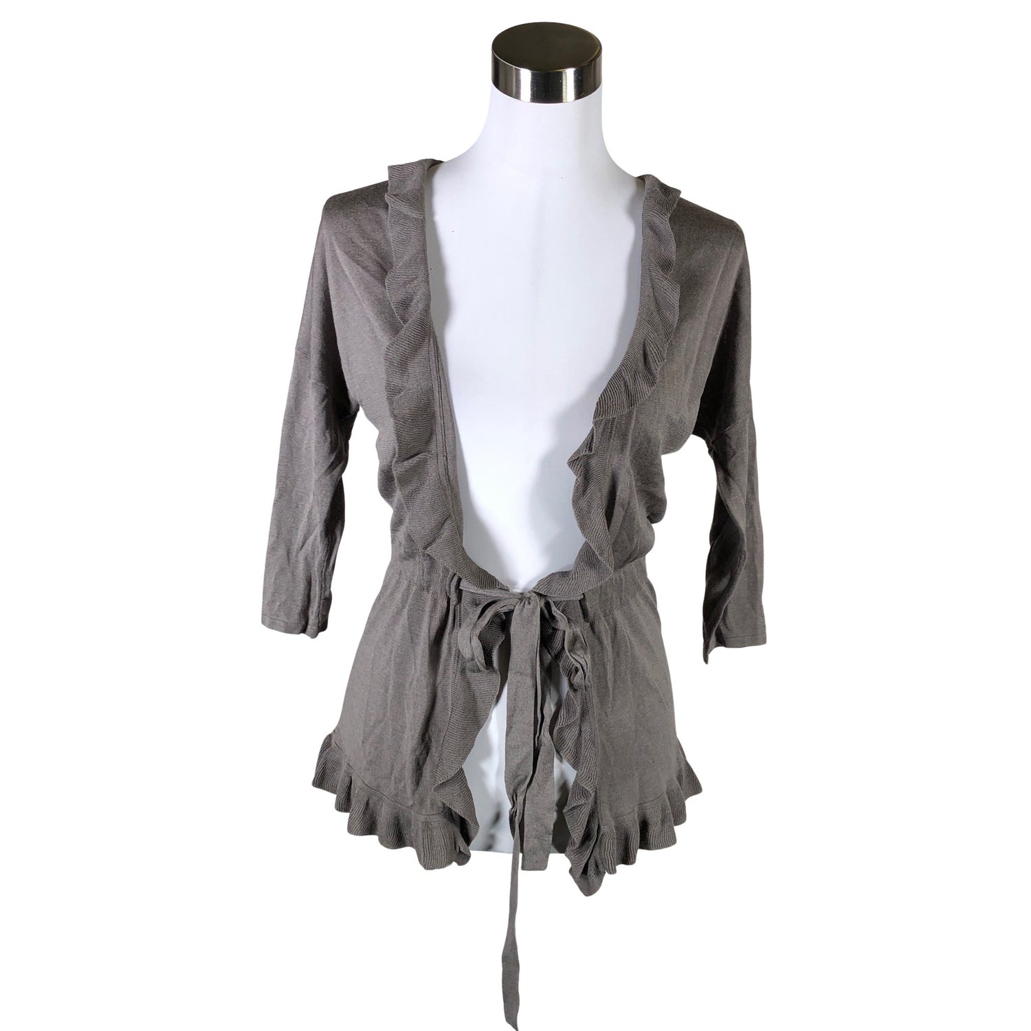 Ohutta neulosta. Ei kiinnitystä. Kiristysnauha vyötäröllä. Vajaamittaiset hihat.