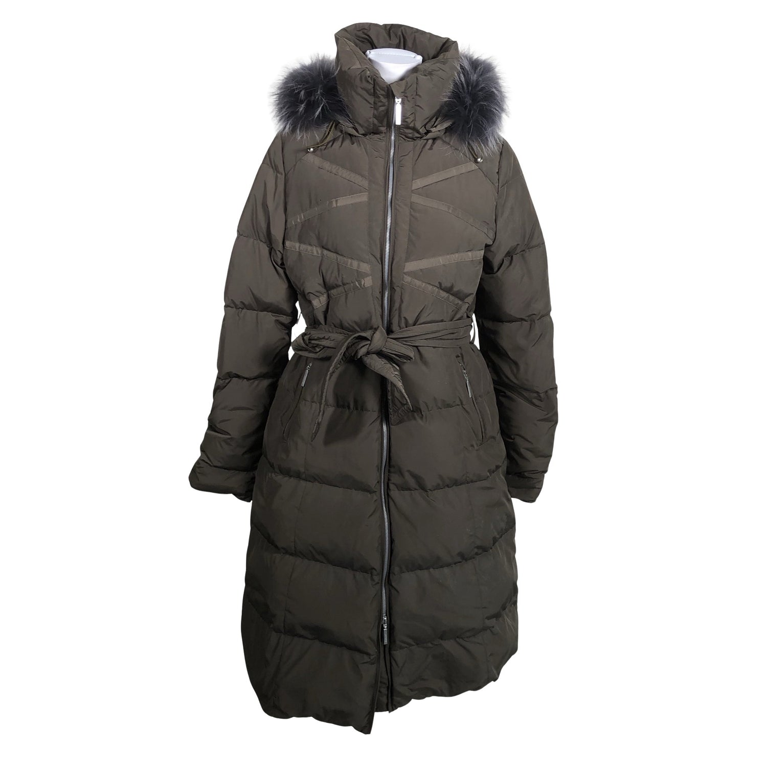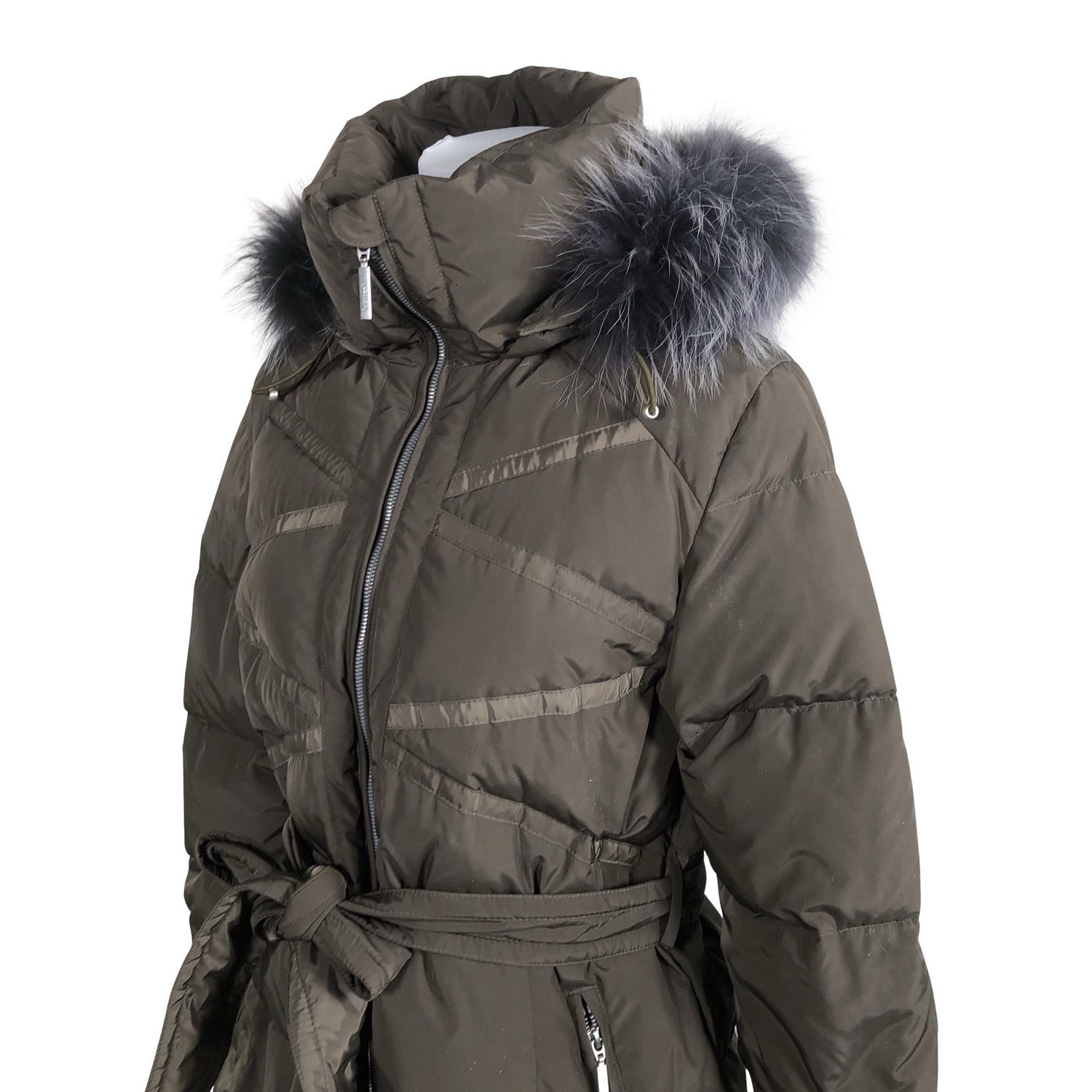Untuvaa. Irrotettava huppu. Irrotettava karvakaulus. Somiste on aitoa turkista. Tuotteeseen kuuluu vyö. Malli: Sissy Fur. Tuotteen taskuissa on vetoketjut. Tuotteessa on kaksisuuntainen vetoketju. Tuotteen pinnassa on aavistus pesu-/käyttökulumaa. Yleisilme on siisti.