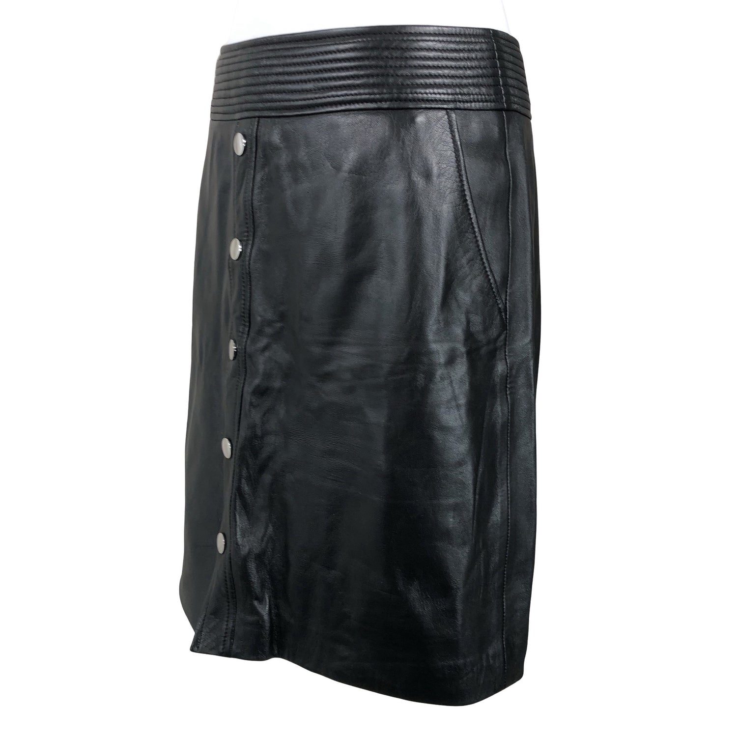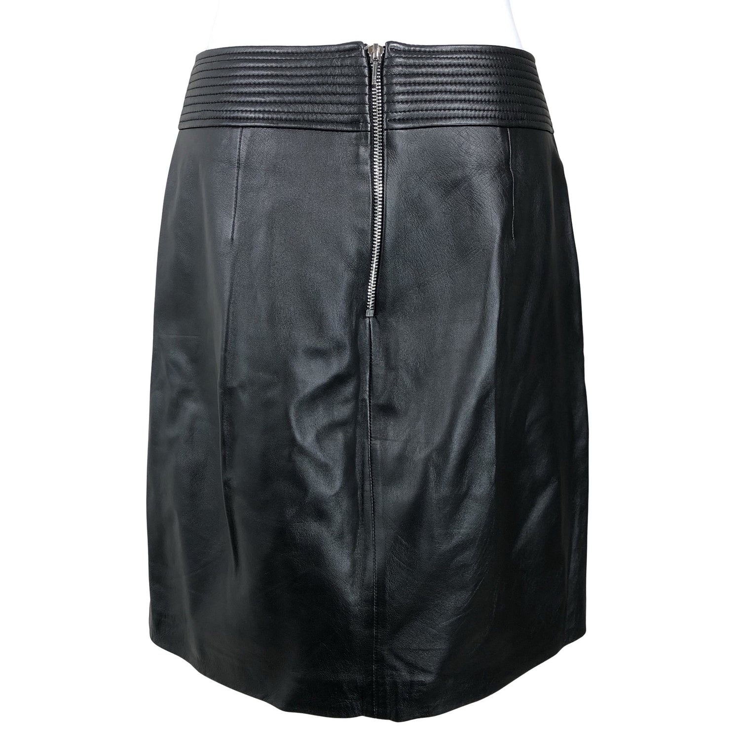 Pehmeää nahkaa. Vetoketju takana. Vaatteessa on taskut.