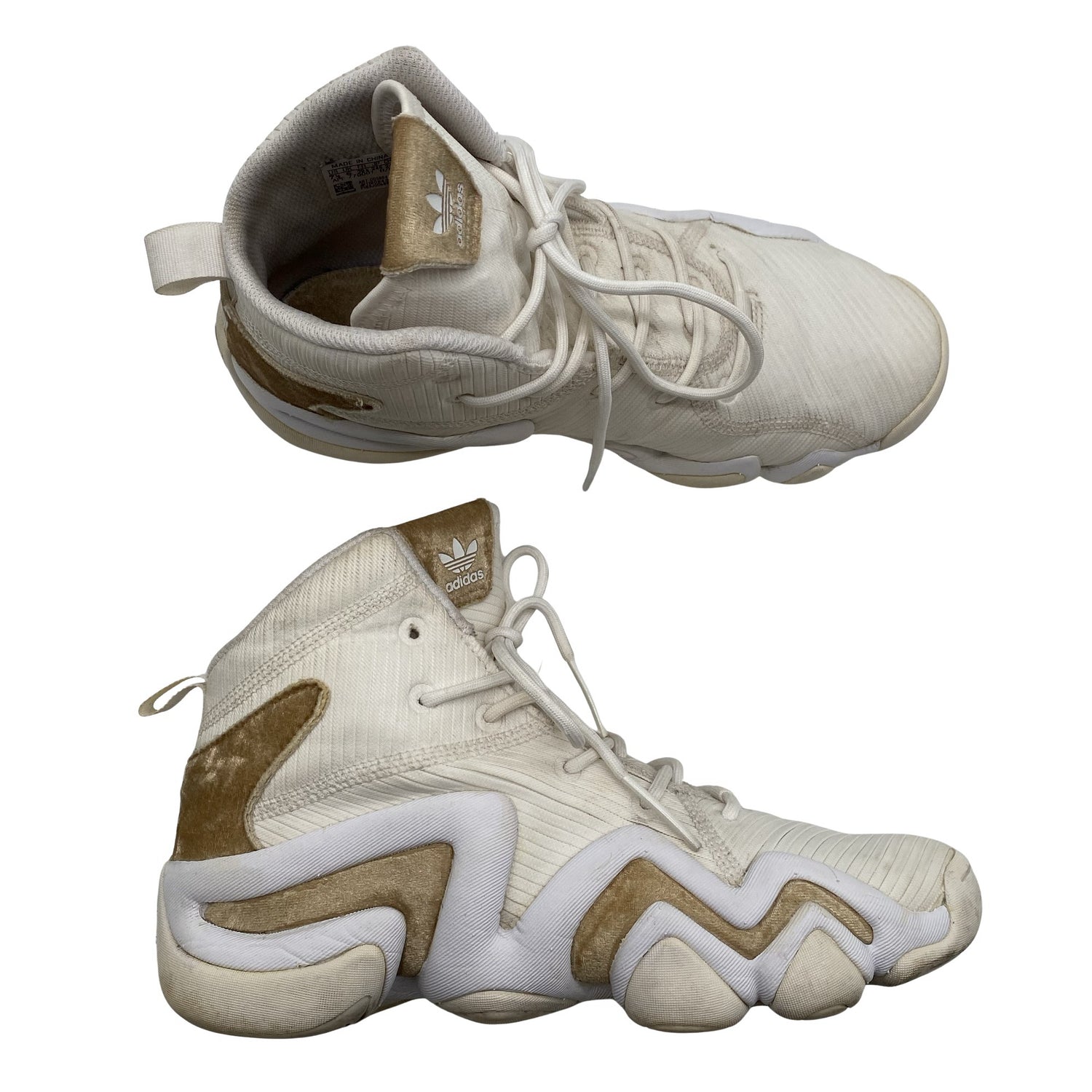 Tekstiiliä. Malli: Adidas Crazy 8 ADV 25. Tuotteen pinnassa on aavistus tummentumaa. Tuotteen sisäpuolella on hieman kulumaa. Yleisilme on siisti.