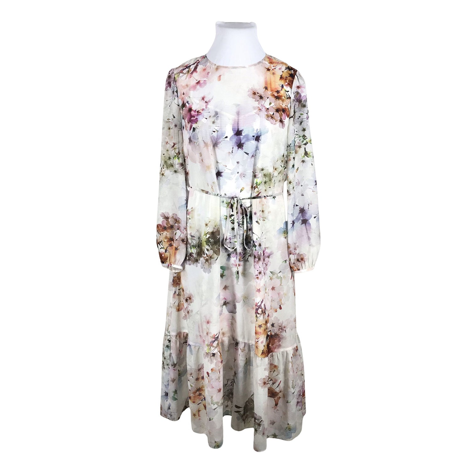 Pitkä malli. Läpikuultava kangas. Materiaali ei jousta. Tuotteessa on alusmekko. Tuotteeseen kuuluu vyö. Arkeen ja juhlaan. Käsinpesu.