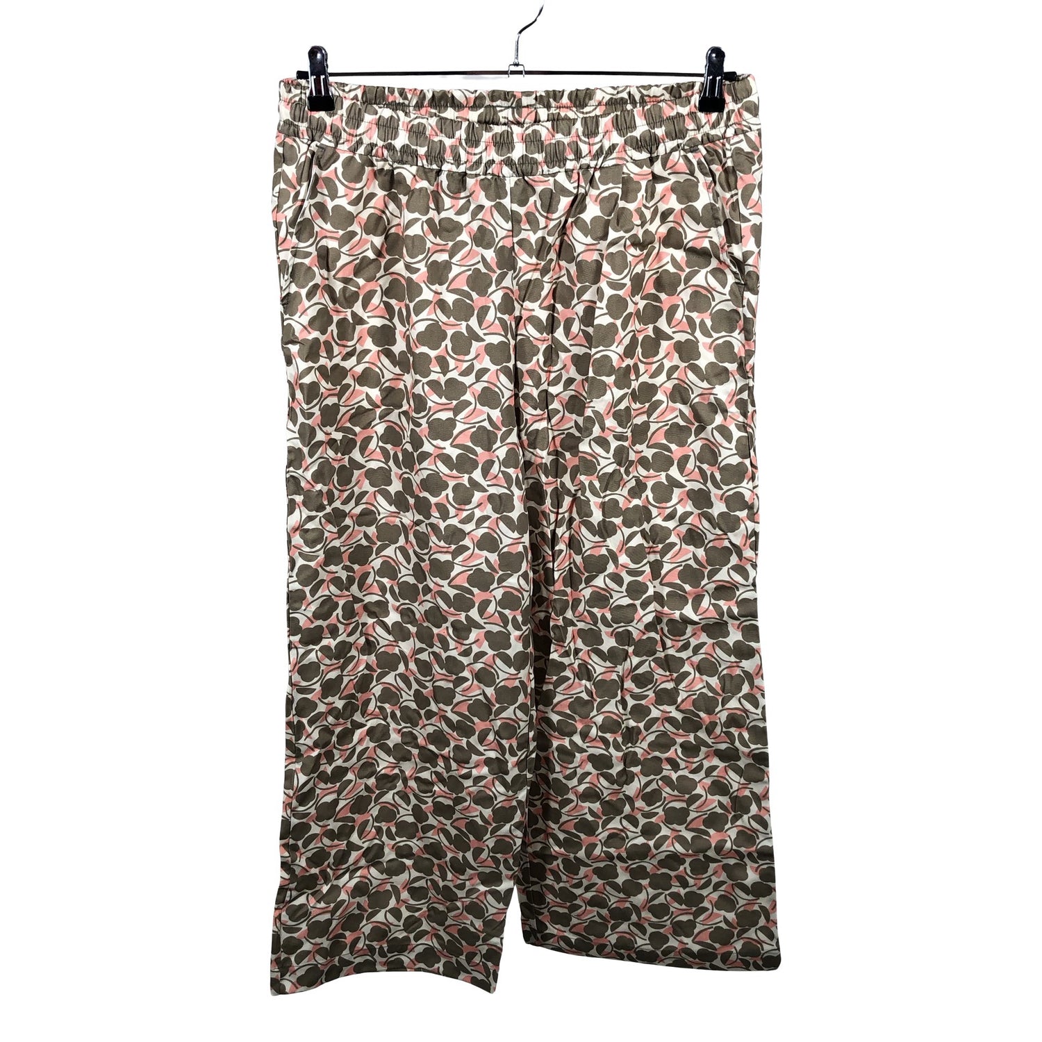 Joustava vyötärö. Kiristysnauha vyötäröllä. Vaatteessa on taskut. Materiaali ei jousta. Tuotteen pinnassa on aavistus pesu-/käyttökulumaa. Yleisilme on siisti.