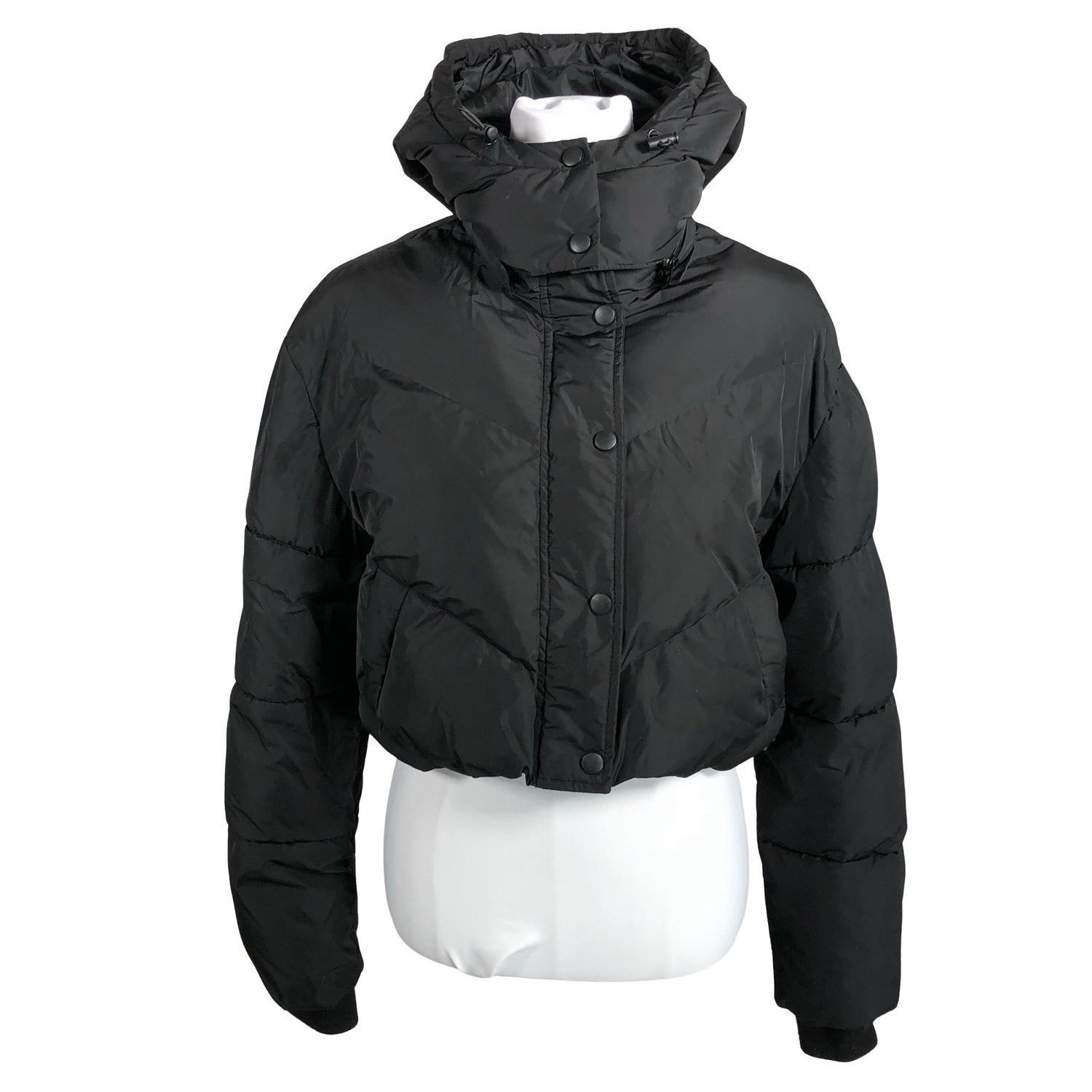 Lyhyt malli. Irrotettava huppu. Tuotteessa on kiristysnyöri helmassa.