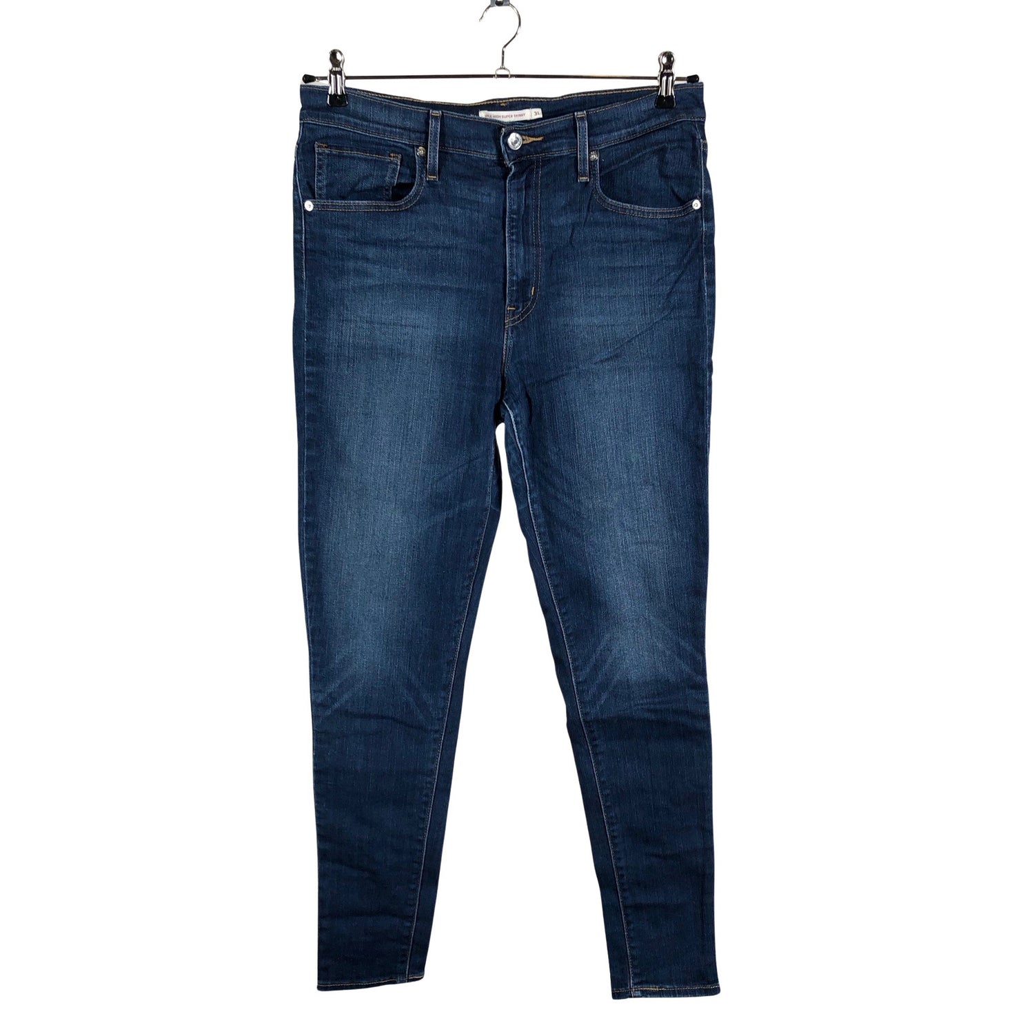 Malli: Mile High Super Skinny. Kulutettu kuosi. Materiaali joustaa hieman. Tuotteen pinnassa on hieman pesu-/käyttökulumaa. Yleisilme on siisti.