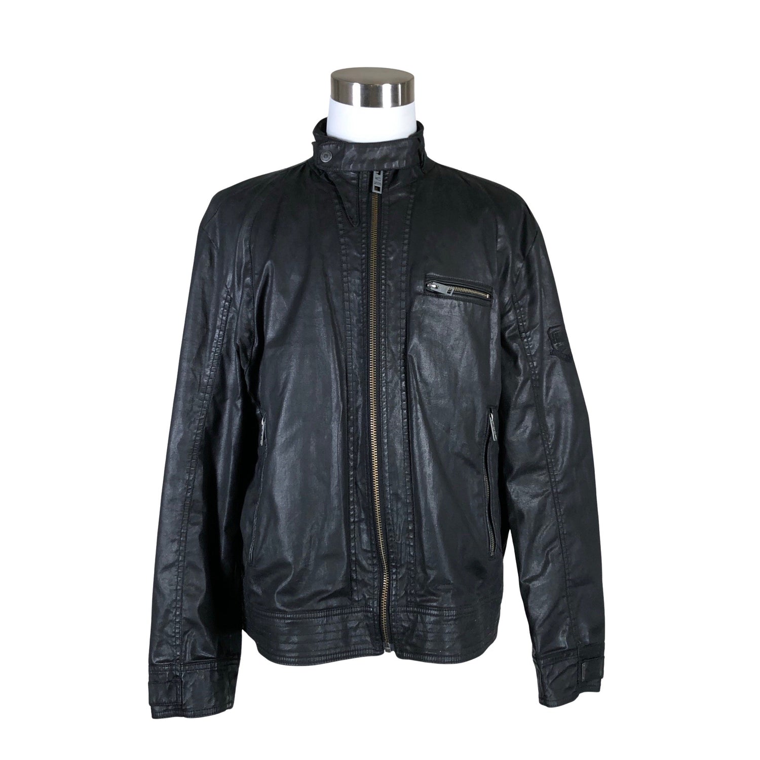 Puuvillaa. Tuotteessa on pinnoite. Tuotteen taskuissa on vetoketjut. Tuotteen pinnassa on aavistus pesu-/käyttökulumaa. Yleisilme on siisti.