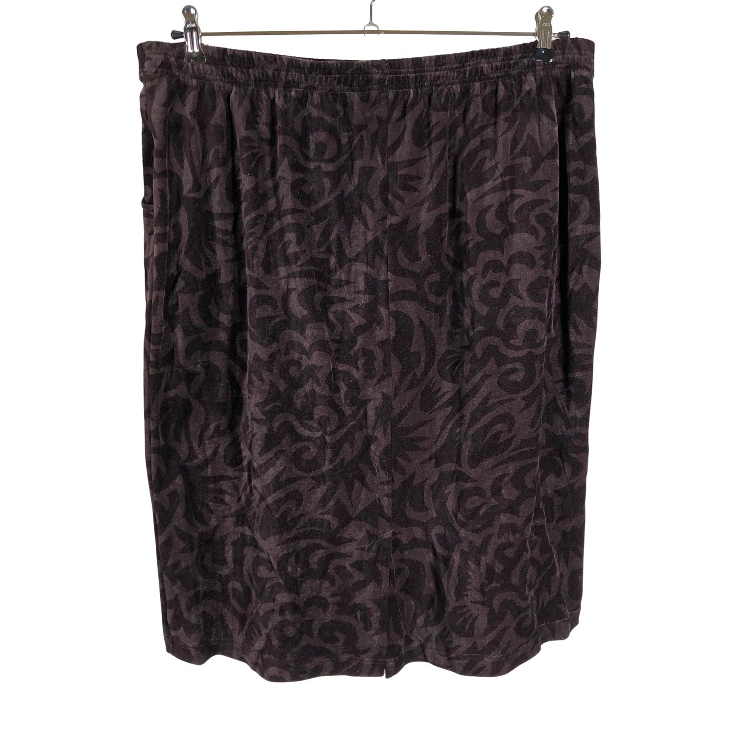 Velouria. Made in Finland. Joustava vyötärö. Vaatteessa on taskut. Tuotteen pinnassa on hieman pesu-/käyttökulumaa. Yleisilme on siisti.