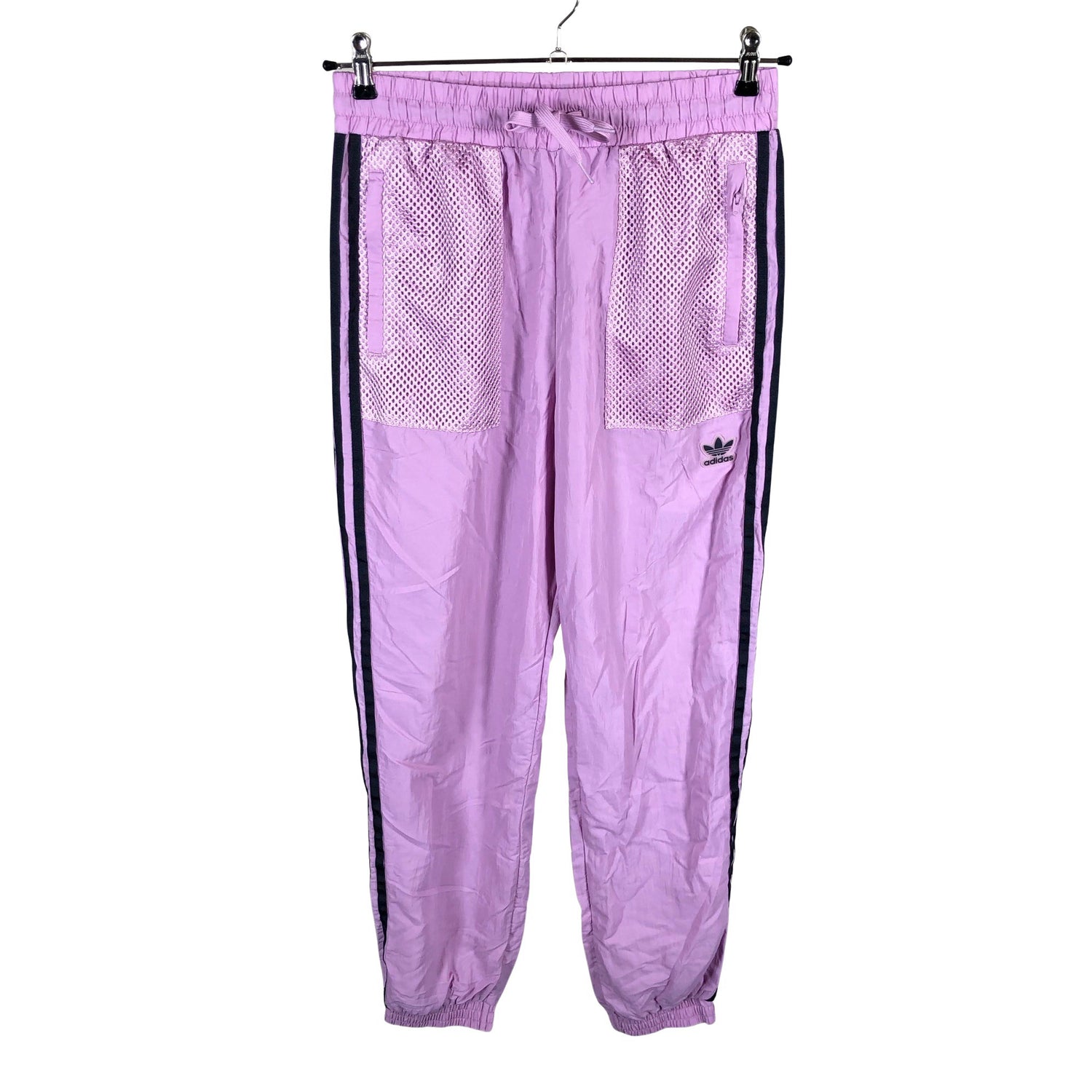 Joustava vyötärö. Kiristysnauha vyötäröllä. Verkkovuori. Tuotteen taskuissa on vetoketjut. Tuotteen pinnassa on hieman pesu-/käyttökulumaa. Yleisilme on siisti.