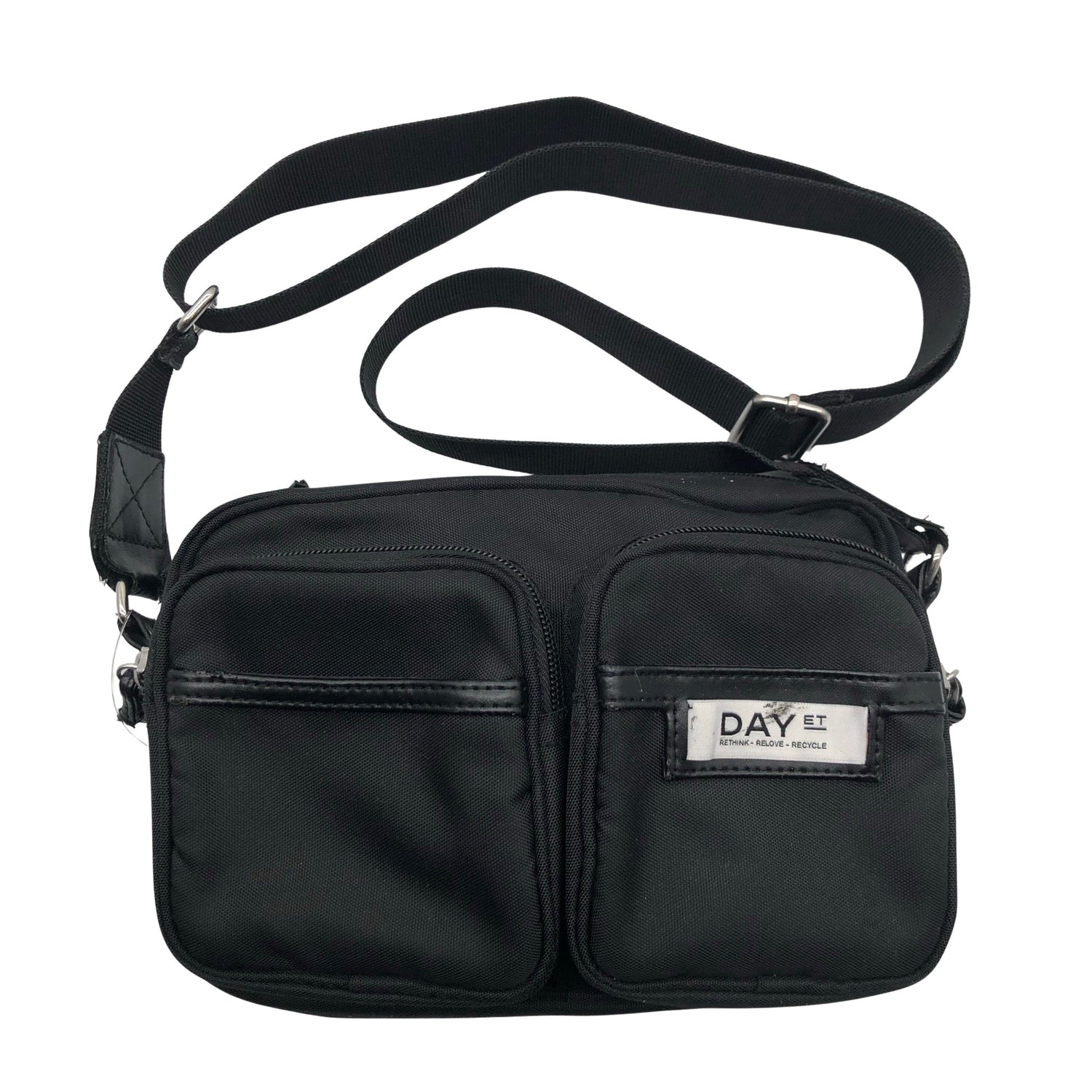 Crossbody. Olkahihnan pituus on säädettävissä. Tuotteen pinnassa on muutama tahra. Tuotteen pinnassa on aavistus pesu-/käyttökulumaa. Yleisilme on siisti.