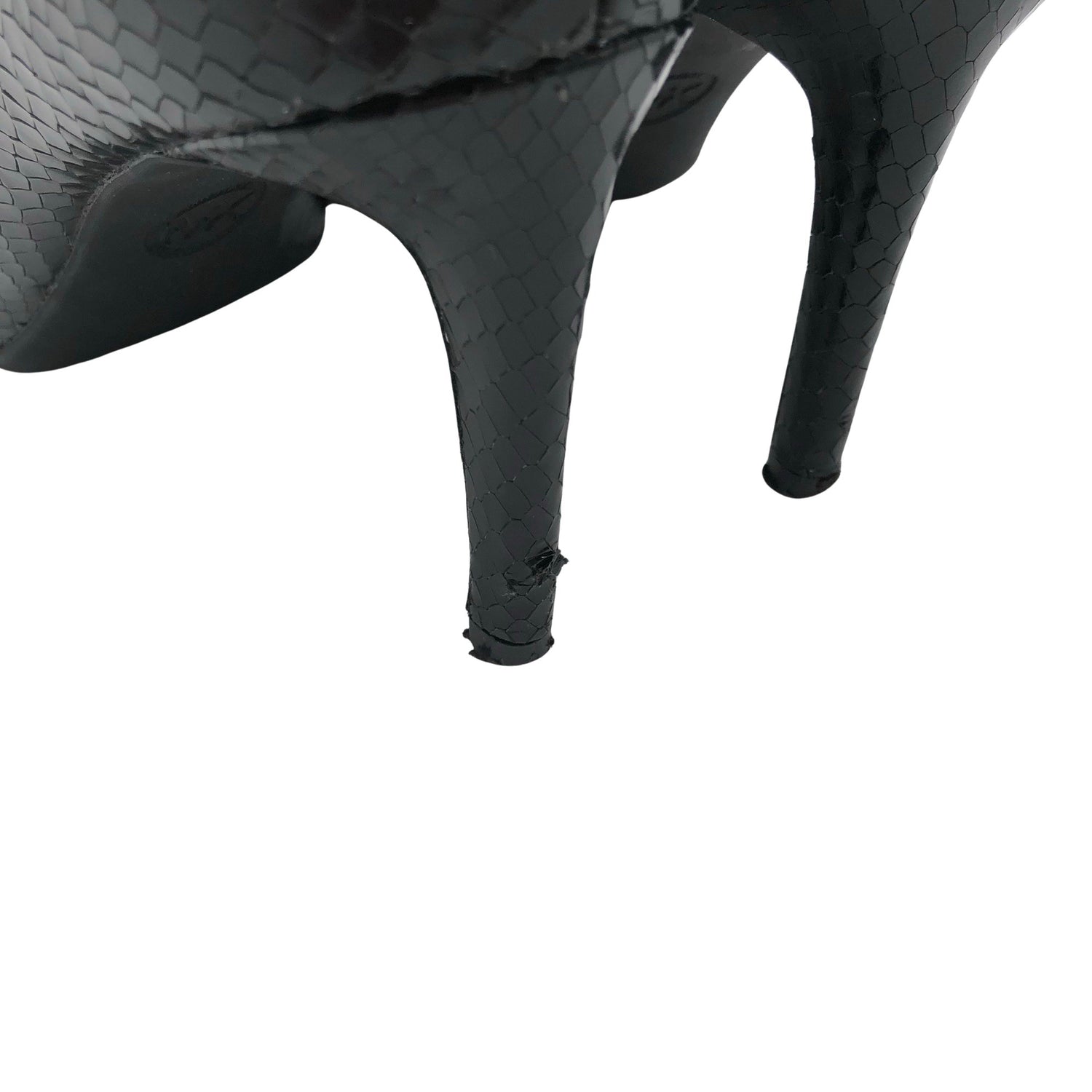Materiaalitieto puuttuu. Todennäköisesti nahkaa. Tuotteen pinta on kiiltävä. Kenkien koroissa on hieman kulumaa. Tuote on muilta osin hyvässä kunnossa.