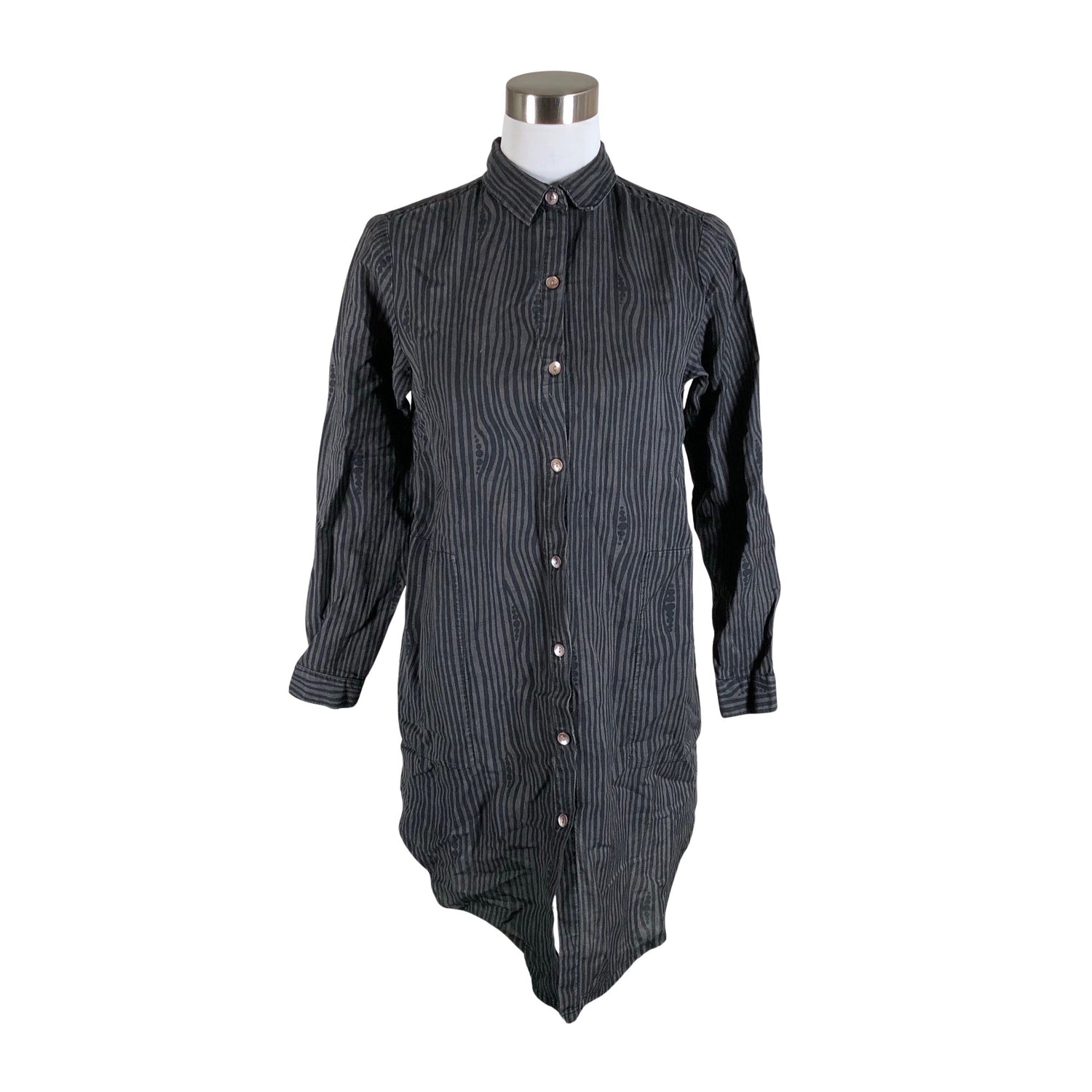 Vaatteessa on taskut. Pellavasekoitetta. Tuotteen pinnassa on hieman pesu-/käyttökulumaa. Tuotteen pinta on hieman haalistunut. Yleisilme on siisti.