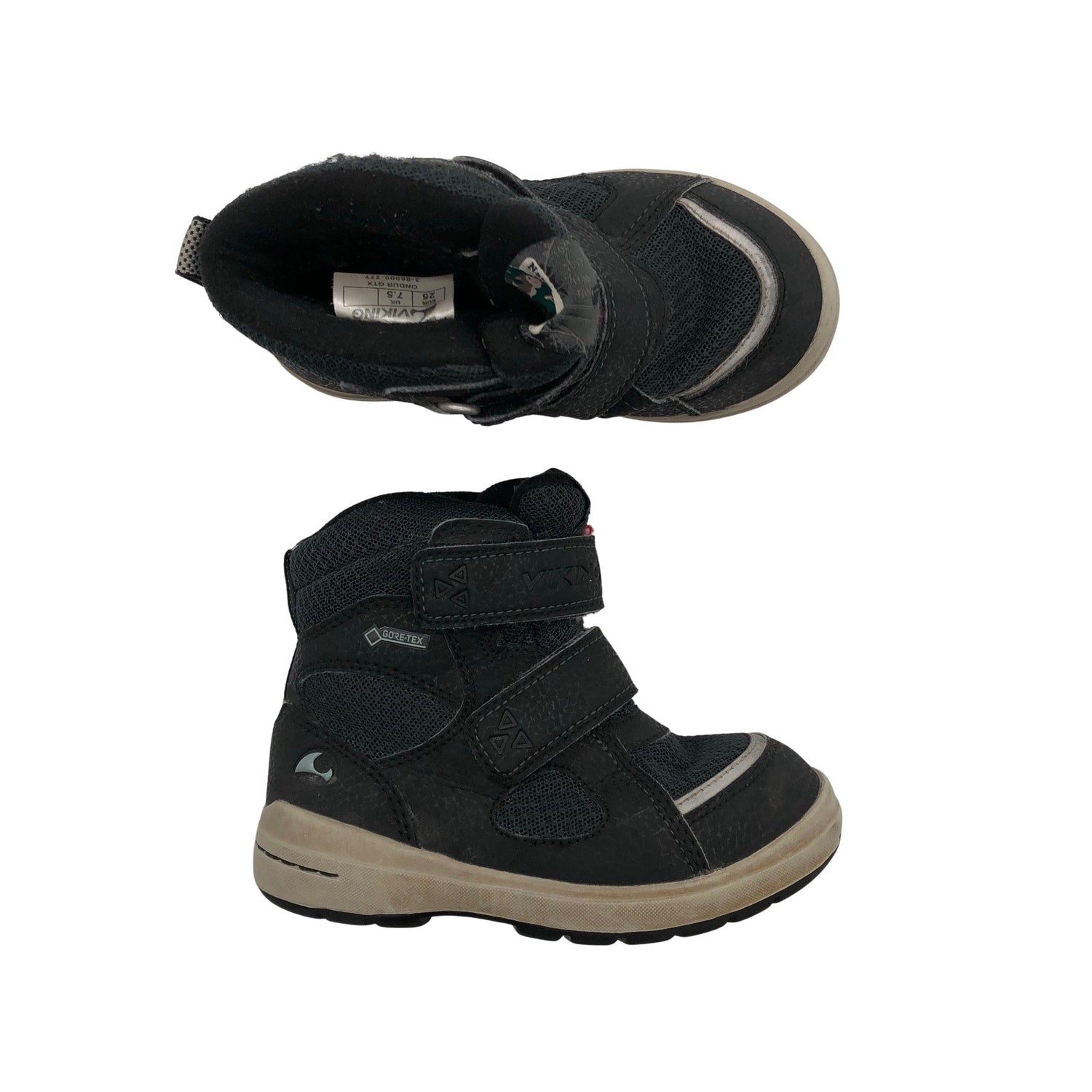 Gore-Tex -merkintä. Tuotteessa on tarrakiinnitys. Budjettilöytö. Kenkien pohjissa on hieman kulumaa. Tuotteen pinnassa on hieman pesu-/käyttökulumaa. Yleisilme on siisti.