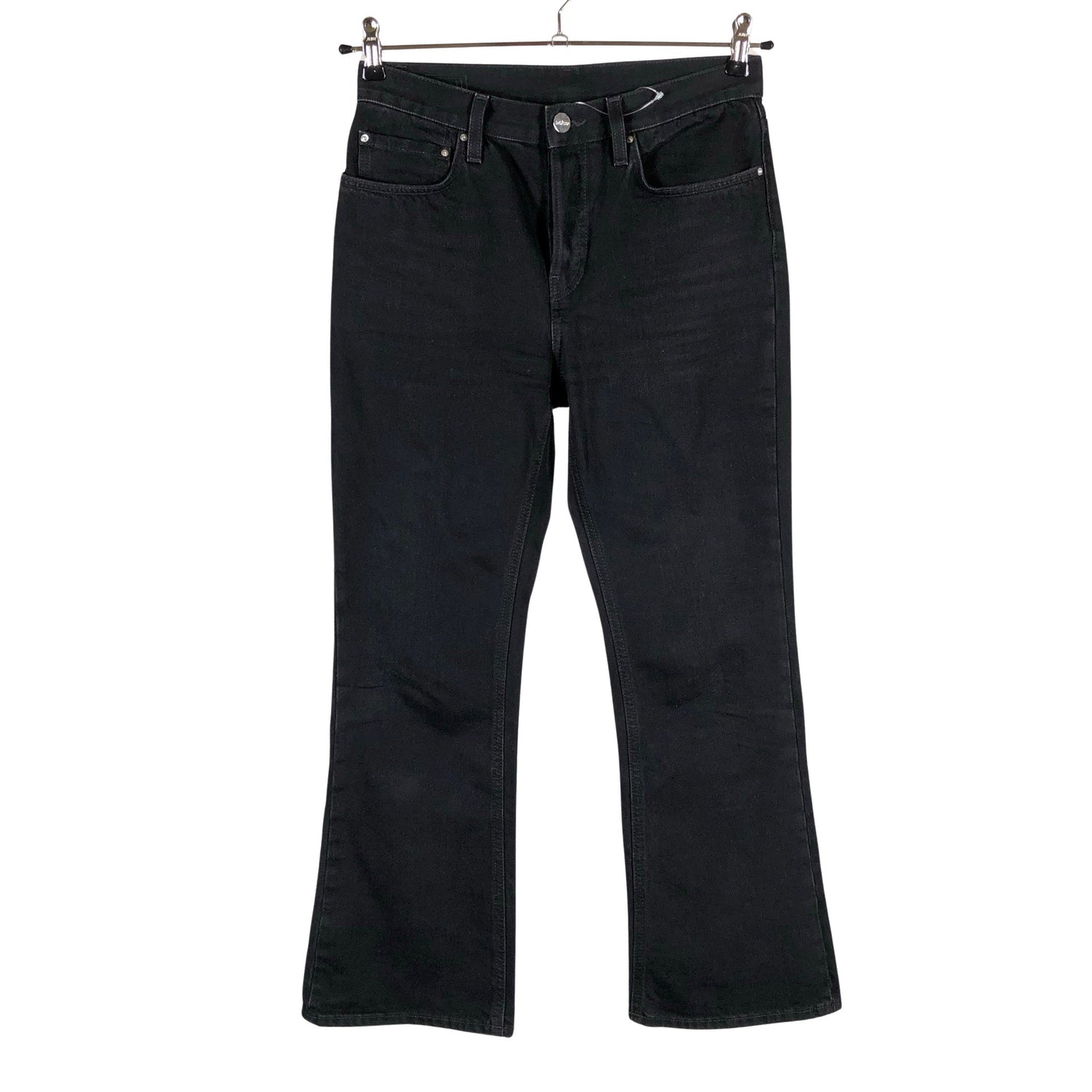 Malli: cropped kick. Edessä napit. Tuotteen pinnassa on hieman pesu-/käyttökulumaa. Yleisilme on siisti.