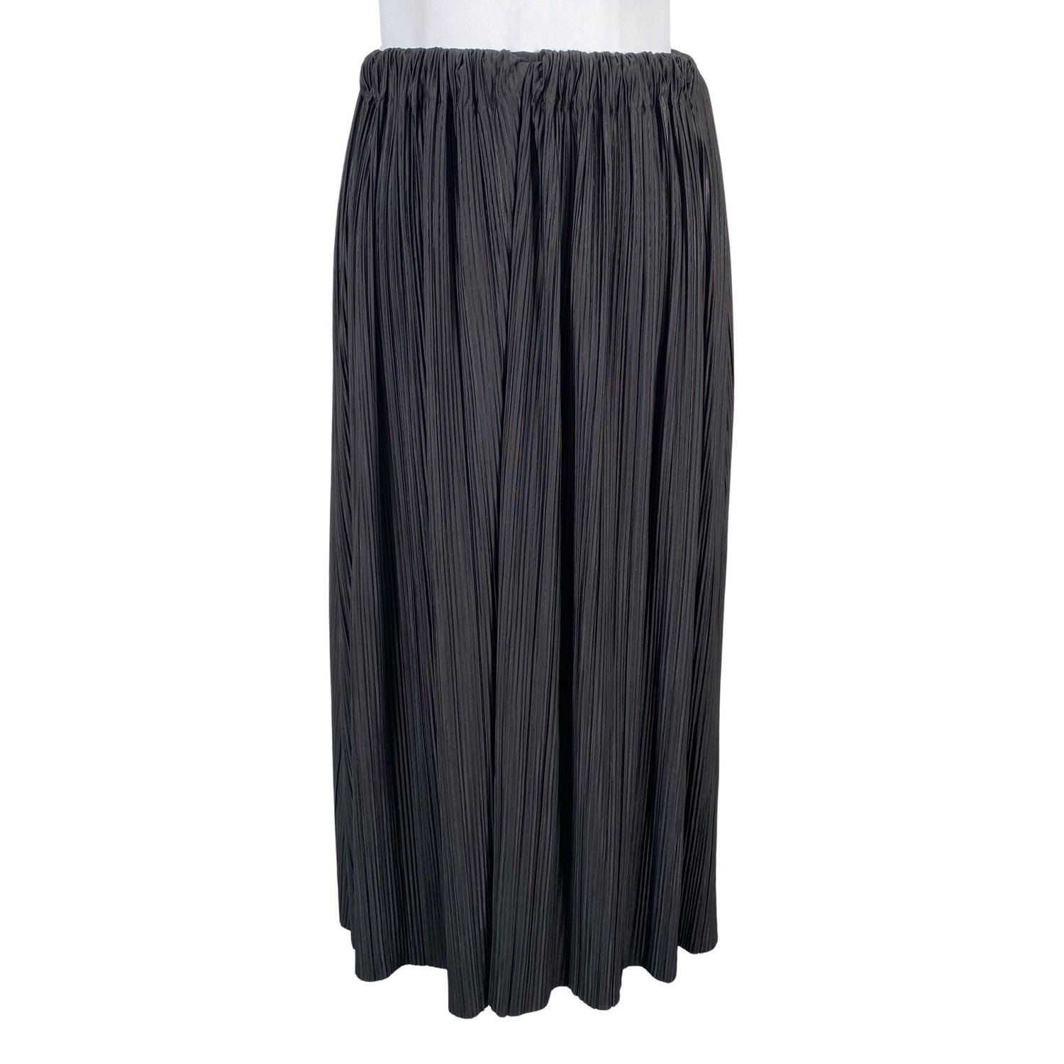 Joustava vyötärö. Malli: Midi. Trikoota. Kuminauha on kiertynyt. Yleisilme on siisti.