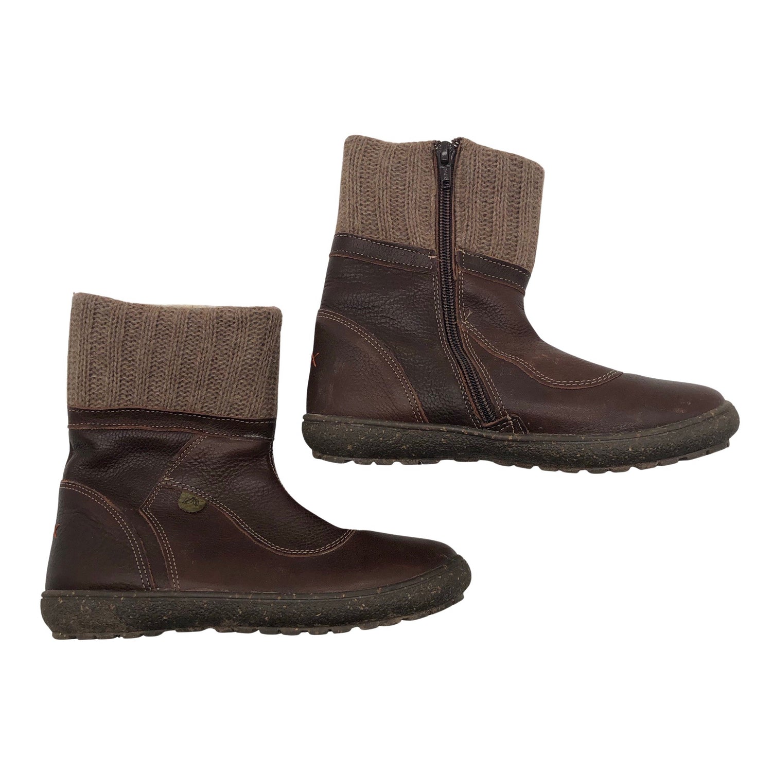 Materiaalitieto puuttuu. Todennäköisesti nahkaa. Lämmin vuori/Paksu vuori. Sivusaumoissa on vetoketjut. Tuotteen pinnassa on aavistus pesu-/käyttökulumaa. Tuote on muilta osin hyvässä kunnossa.