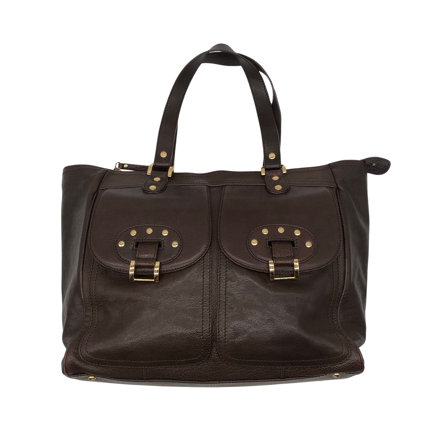 Nahkaa. Kultaiset metallisosat. Laukun kulmissa on hieman kulumaa. Laukun pohjassa on hieman kulumaa. Yleisilme on siisti.