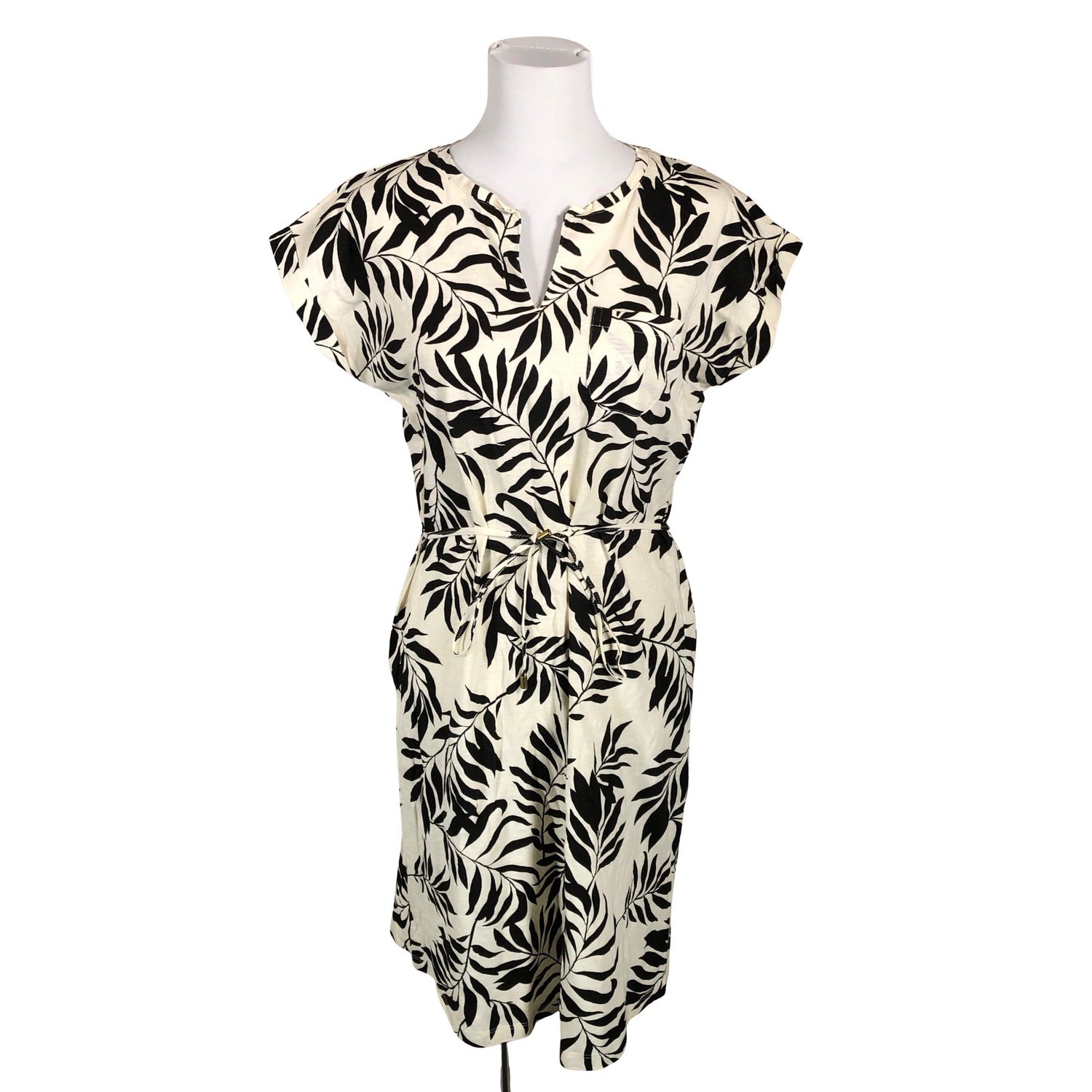Materiaali joustaa. Tuotteeseen kuuluu vyö. Solmittava malli.