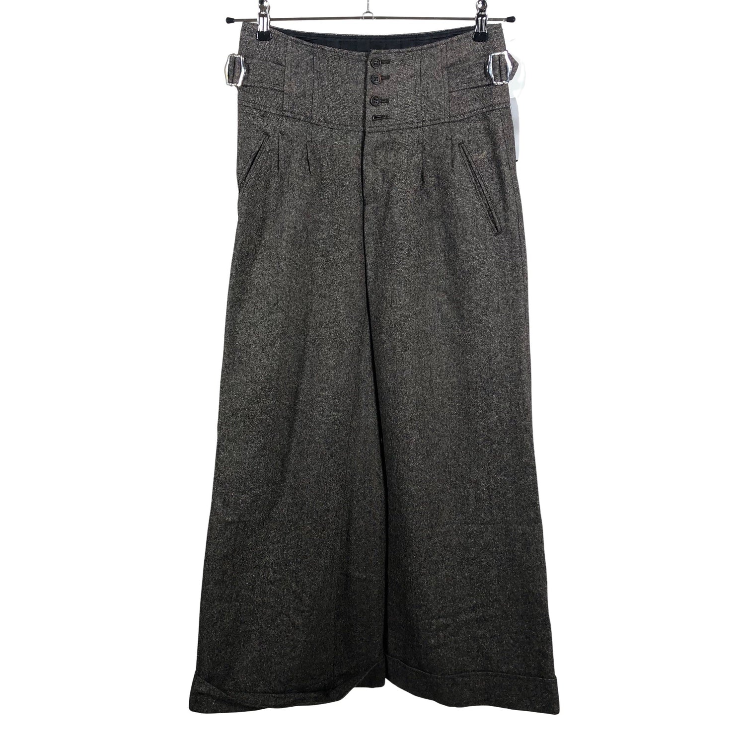 Säädettävä vyötärön koko. Tuotteesta puuttuu nappi/nappeja. Tuotteen pinnassa on hieman pesu-/käyttökulumaa. Yleisilme on siisti.