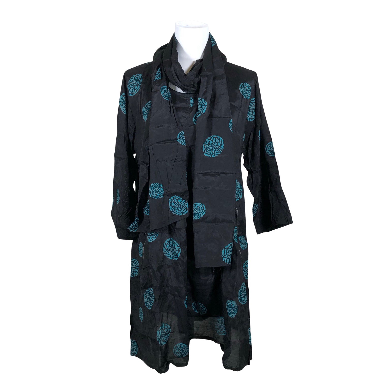 Mitat: 31 x 204 cm. Vaatteessa on taskut. Setti. Kainaloissa on aavistus nukkaa. Yleisilme on siisti.