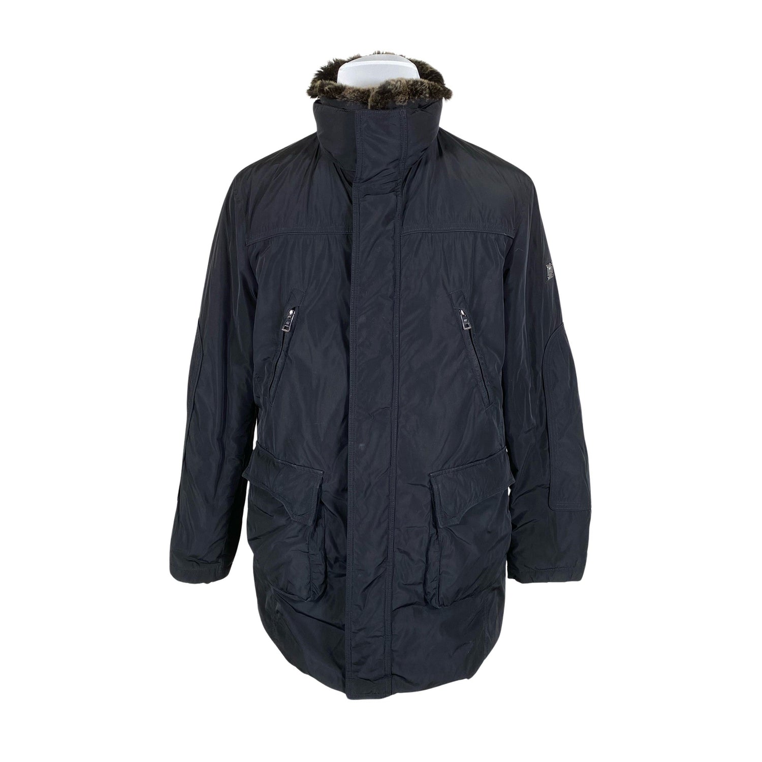 Untuvaa. Irrotettava karvakaulus. Tuotteessa on kaksisuuntainen vetoketju. Hihan- ja/tai lahkeensuissa on kulumaa. Tuotteen pinnassa on hieman pesu-/käyttökulumaa. Tuotteessa on muutama nirhauma. Tuotteen pinnassa on käyttölikaa. Lähtee todennäköisesti pesussa. Yleisilme on siisti.