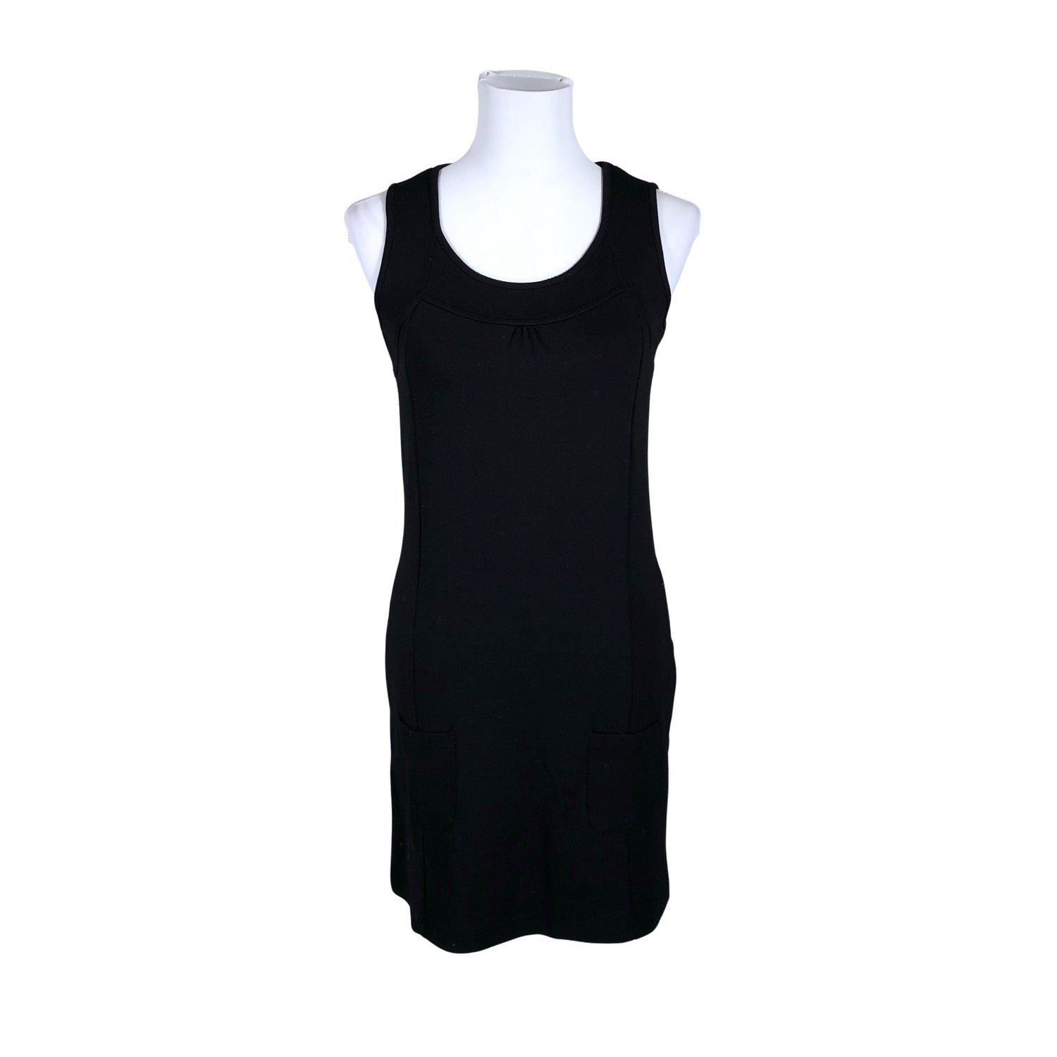 Paksua trikoota. Materiaali joustaa. Vaatteessa on taskut. Tuotteen pinnassa on hieman pesu-/käyttökulumaa. Yleisilme on siisti.
