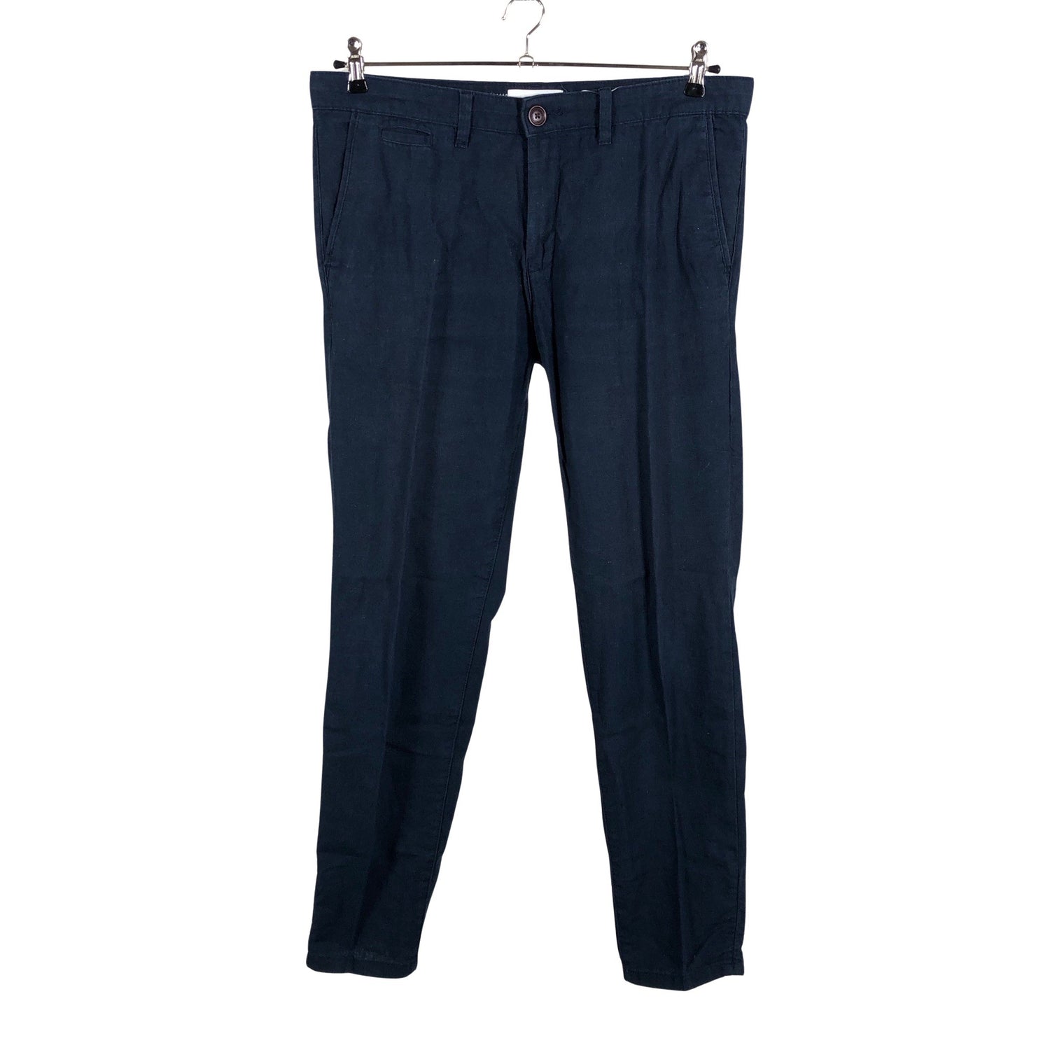 Pellavasekoitetta. Malli: Relaxed. Tuotteen pinnassa on hieman pesu-/käyttökulumaa. Yleisilme on siisti.