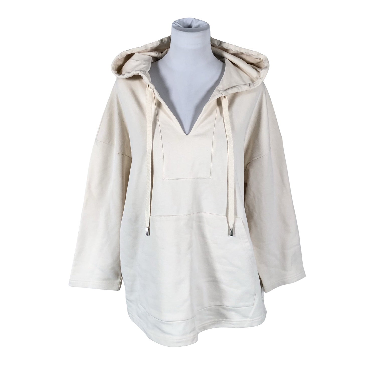 Puuvillaa. Materiaali joustaa hieman. Oversized. Konepesu sallittu. Tuotteen pinnassa on aavistus tummentumaa. Yleisilme on siisti.