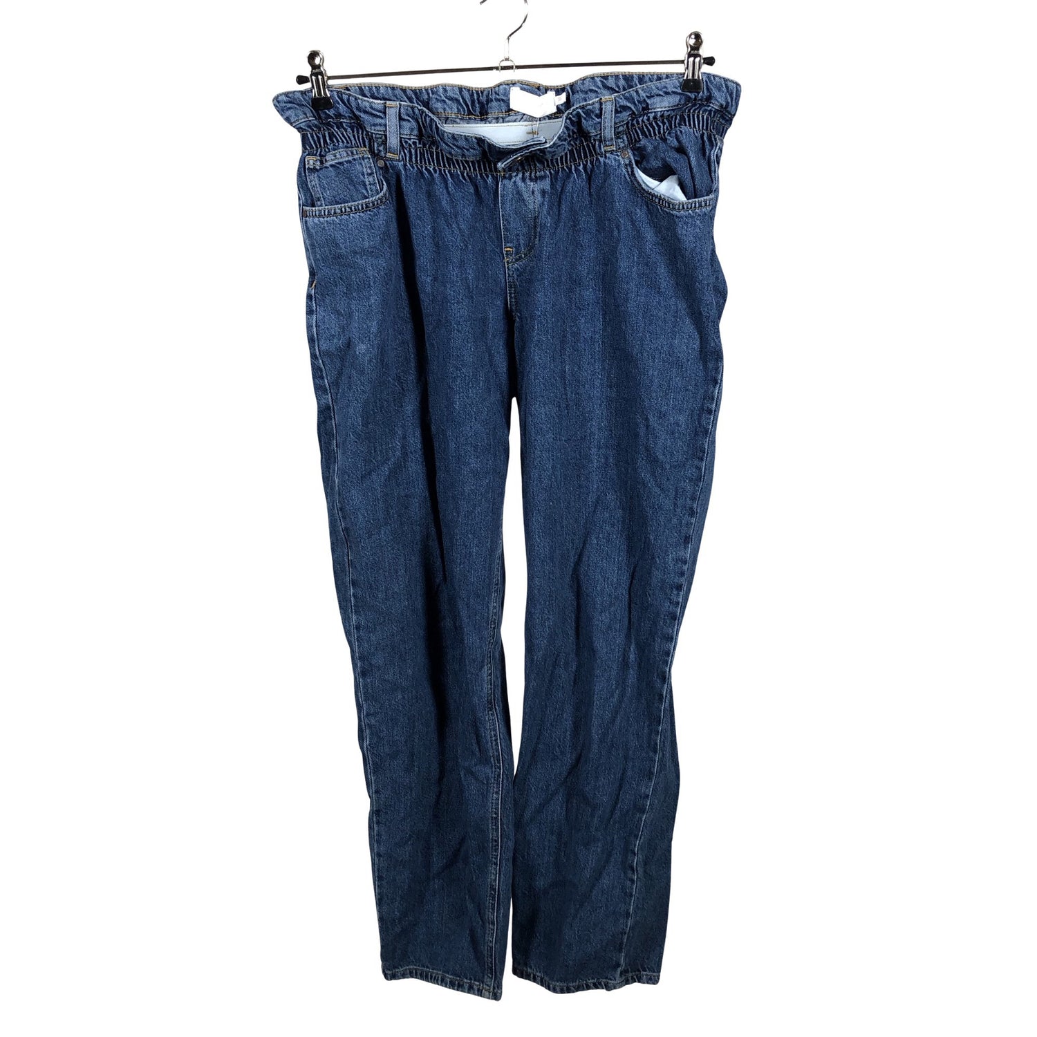 Joustava vyötärö. Tuotteen pinnassa on muutama tahra. Tuote on muilta osin hyvässä kunnossa.