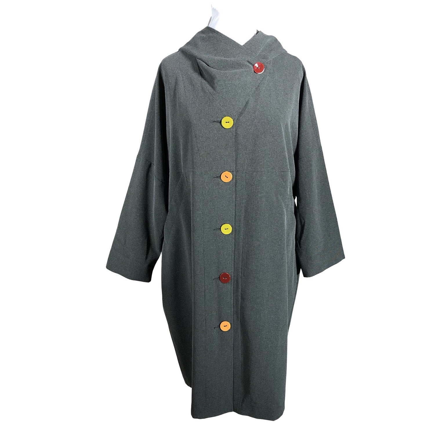 Takki/ jakku. Tuotteessa ei ole vuorta. Tuotteessa on huppu. Reilua mitoitusta. Vaate sopii monessa koossa. Ei vesipesua/kuivapesu. Kemiallinen pesu.