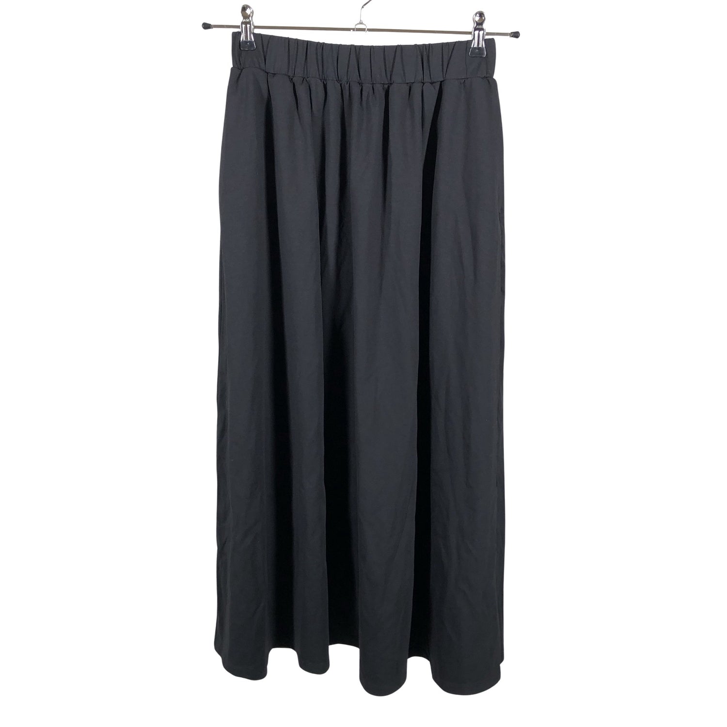 Joustava vyötärö. Vaatteessa on taskut. Sivusaumassa on halkio.