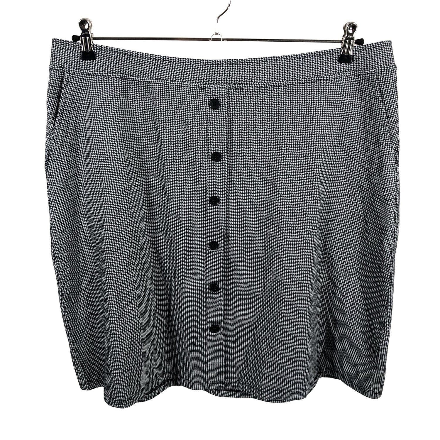 Paksua trikoota. Vaatteessa on taskut. Koristenapit. Materiaali joustaa.