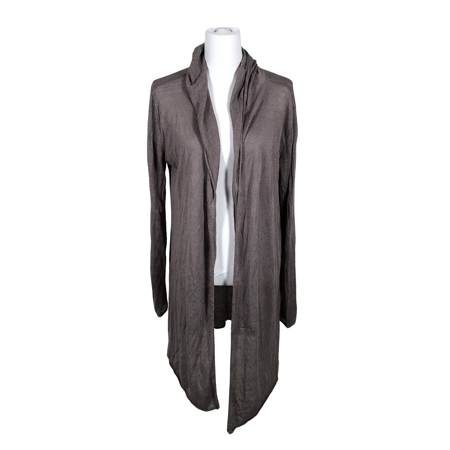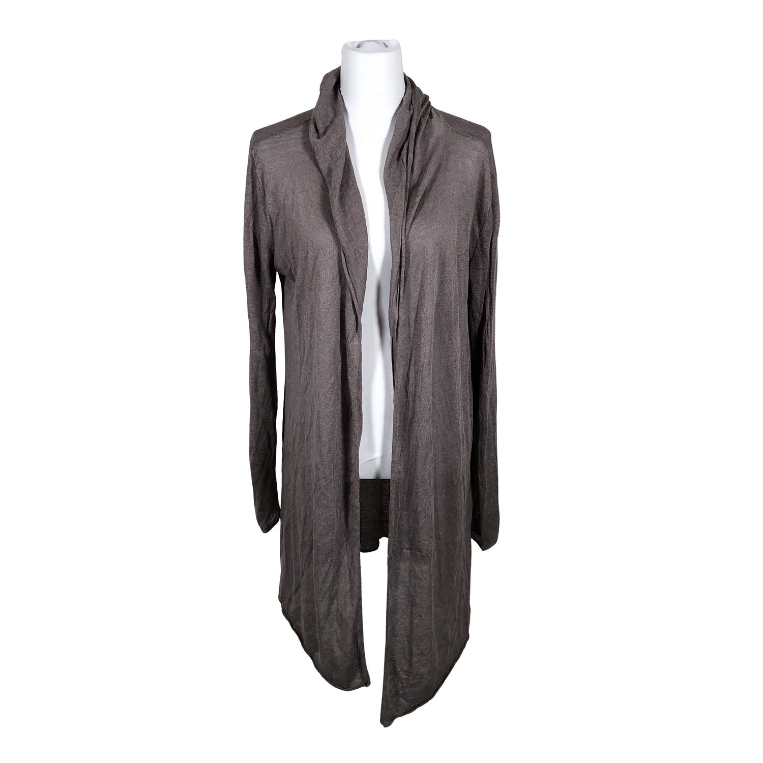 Väri: harmaanruskea. Ohutta neulosta. Avonainen malli. Budjettilöytö. Tuotteen pinnassa on langannousu/langankiristymä. Tuotteen pinnassa on hieman pesu-/käyttökulumaa. Yleisilme on siisti.