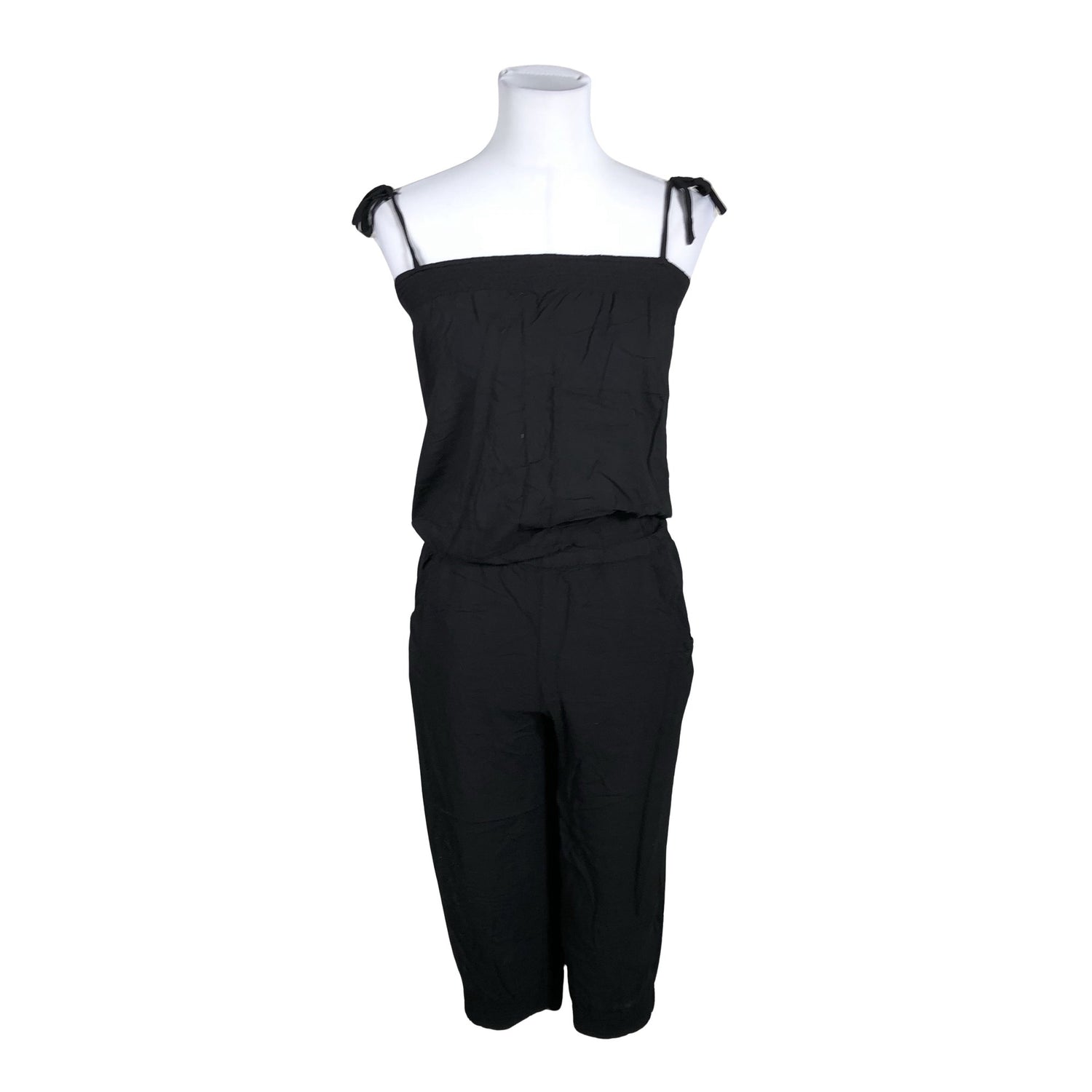 Ohutta materiaalia. Joustava vyötärö. Säädettävät olkaimet. Tuotteen pinnassa on hieman pesu-/käyttökulumaa. Yleisilme on siisti.